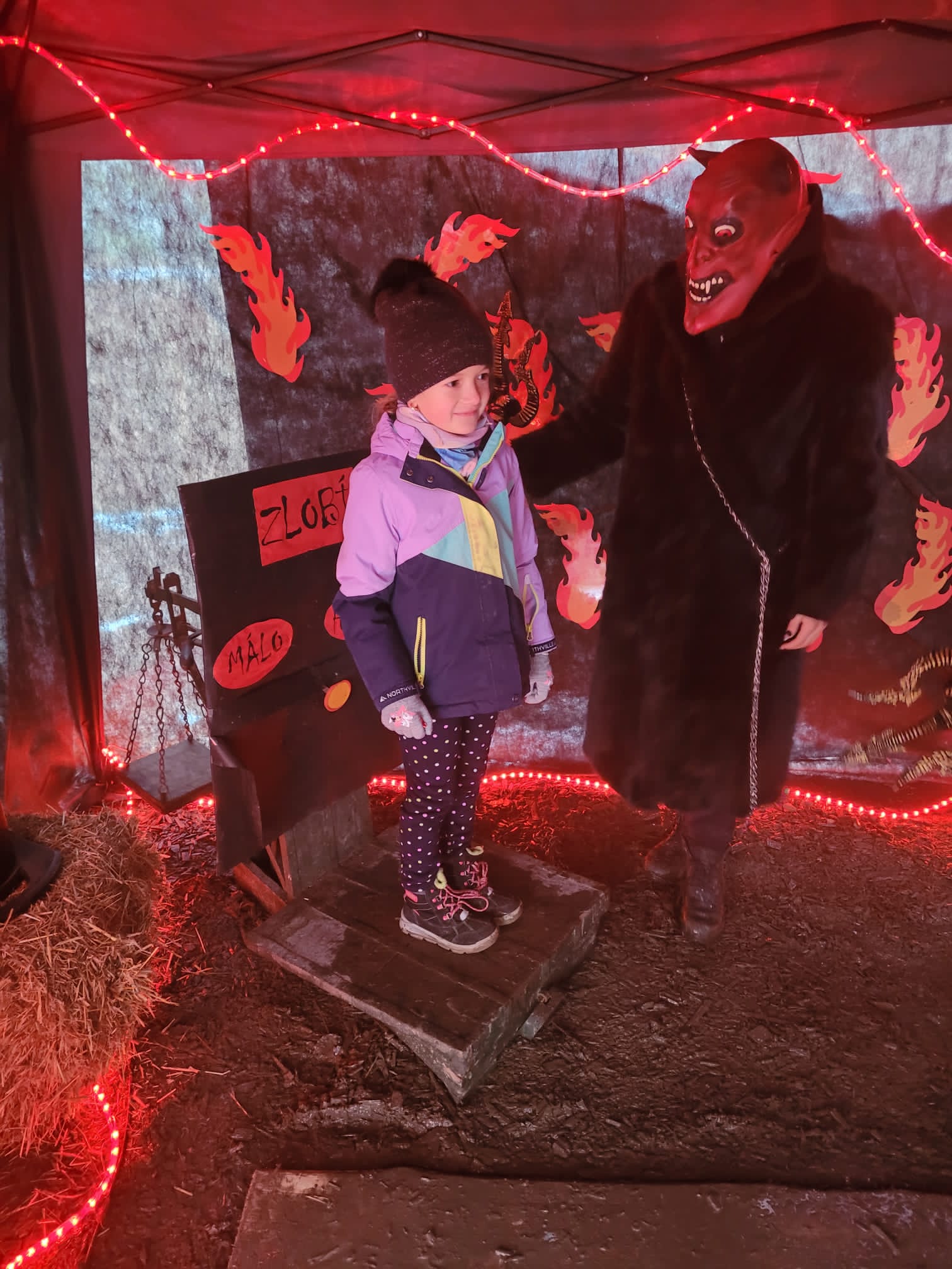 Hodné peklo = parta hodných čertů bez masek, andělé a Mikuláš. Mikuláš přečte hříchy dětí a vyslechne básničku. Anděl pak předá balíček se sladkostmi.