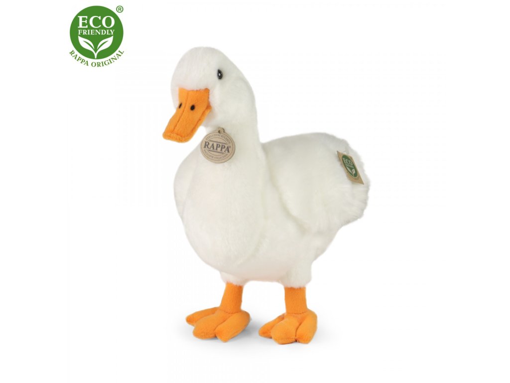 Plyšová kachna bílá ve velikosti 33 cm je vyrobena z vysoce kvalitní plyše a je tak součástí exkluzivní kolekce plyšových hraček RAPPA. Co to vlastně ECO-FRIENDLY znamená? Výplň plyšové hračky je vyrobena z recyklovaných PET lahví. Tento materiál je zcela bezpečný, na omak nerozeznatelný od standartní výplně a plně atestovaný pro bezpečnost i těch nejmenších. Rozhodli jsme se jít zelenou cestou co nejméně zatěžující životní prostředí- cestou ECO-FRIENDLY.
