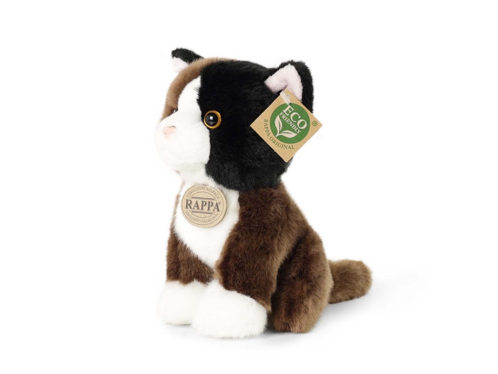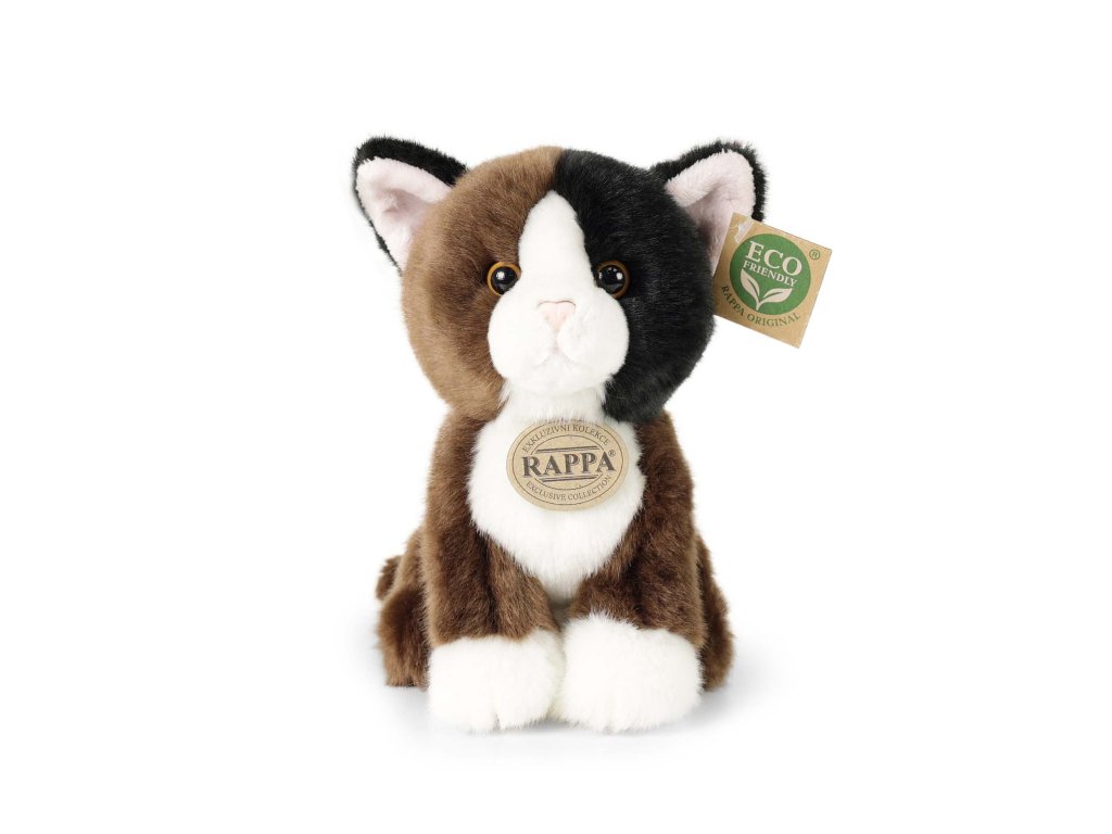 Nádherná plyšová kočka o velikosti 18 cm. Kočka je vyrobena z vysoce kvalitní plyše a je tak součástí exkluzivní kolekce plyšových hraček RAPPA. Co to vlastně ECO-FRIENDLY znamená? Výplň plyšové hračky je vyrobena z recyklovaných PET lahví. Tento materiál je zcela bezpečný, na omak nerozeznatelný od standardní výplně a plně atestovaný pro bezpečnost i těch nejmenších.